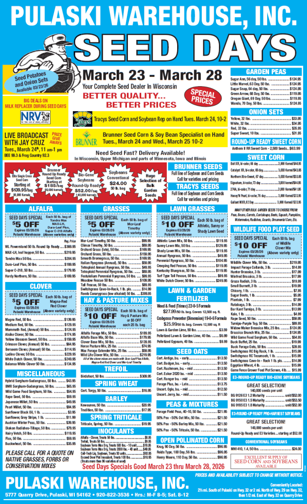 Additionally, we provide agriculture, lawn and garden, food plots, and gifts. See more below!